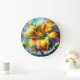 Reloj Redondo Grande Daylily Daylilies Flower Yellow Teal Personalized