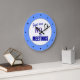 Reloj de pared de humor de oficina que dice Sólo di no a las reuniones con arte vintage de un hombre en una cara blanca y puntos negros para marcar las horas en un fondo azul. Haga clic en Personalizar para agregar su nombre o mensaje, cambiar elementos, agregar su logotipo e incluso guardar su diseño para más adelante.