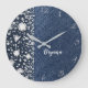 Reloj Redondo Grande Denim Azul y Diamantes Brillo Corazón de Diamante
