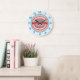 This funny novelty clock is perfect for your favorite dentist's office wall. It shows an open mouth with teeth and clock numbers written in blue toothpaste. Light blue polka dots fill the background. The text reads, "Welcome to [Your Dentist's Name] Office." It makes a great thank you gift or gift for a new graduate of dental school. Easily personalize using the template field.