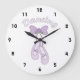 Su niña amará este reloj de pared lindo, ofreciendo un par de deslizadores del ballet atados con un arco, y la palabra "baile"… todo en una tonalidad de la lavanda. ¡Esto parecerá tan dulce en una pared del dormitorio de una bailarina futura!