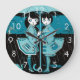 Dos niñas pequeñas vestidas de azul bajo un paraguas en un día lluvioso... con un caracol azul. Dibujo del caricaturista italiano Antonio Rubino para la portada de la revista infantil "Il giornalino della Domenica", 1908.
