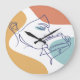 Reloj Redondo Grande dibujo de líneas poster de la mujer tomando café