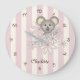 El diseño del producto presenta un koala bebé rodeado de flores. El dibujo animado de animal adorable con rayas rosadas hace un reloj de pared único y lindo con texto personalizado para el cuarto de bebé de niña y habitación de niños.