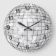Un reloj de pared con una bola de disco de plata. Perfecto para una habitación temática de los años 70 o para un amante de la música disco.