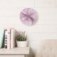 Reloj Redondo Grande Diseño de fractal gris rosa claro abstracto modern