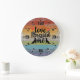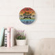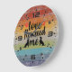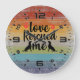 Disponible en dos tamaños, este reloj de pared está fabricado con el proceso de impresión AcryliPrint®HD; luce cualquier diseño de la forma más vibrante y con la mayor calidad. Pide este retro amor rescatado me gran reloj para tus paredes o dar a amigos y familia como regalo para un tesoro eterno.