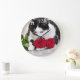 Reloj Redondo Grande El gato lindo con la rosa roja