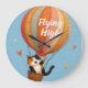 Reloj Redondo Grande El gato lindo el globo de aire caliente el arte ca