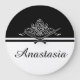 Elegante diseño floral con decoración de nombres y rayas en fondo blanco y negro