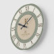 Reloj Redondo Grande Elegante Moderna Familia Monograma Crema de Salvia