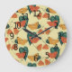 Reloj Redondo Grande Elegante patrón de mariposas y hojas de época |