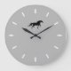 Reloj Redondo Grande Elegante silueta negra de caballo en gris plateado