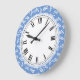 Reloj Redondo Grande Elegantes hojas azules y blancas primavera amante