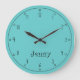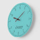 Los números negros caprichosos acentúan un reloj personalizado. Puede elegir el color del fondo Y el texto! Si elige el mismo color para el texto y el fondo, se mostrará este maravilloso estilo subestimado. También puede cambiar a un estilo cuadrado si lo prefiere. PRIMERO, escriba el nombre elegido en el cuadro. Entonces, puede cambiar el color de fondo si lo desea. Así es como: 1. Haga clic en el botón personalizar naranja. 2. Haga clic en la flecha desplegable de edición en el lado derecho de la pantalla. 3. Elija un color disponible O haga clic en el vínculo avanzado (si está disponible) para obtener más opciones. Para cambiar el texto, haga clic en la primera línea del nombre y verá aparecer un botón de color. Simplemente elige tu nuevo color. No hay necesidad de tocar la segunda línea de texto - es decir, la sombra negra.