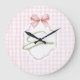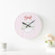 Reloj Redondo Grande Emma Personalizado con Lazo Rosa y Estampado Gingh