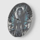 Una figura hipnotizante adornada con un vestido y unas alas oscuras y expansivas, de aspecto cuervo, se ilumina con un halo radiante. Su presencia serena y poderosa se ve realzada por delicadas mariposas que revolotean a su alrededor, añadiendo un toque de capricho a la escena mística.