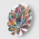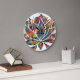 Enigmatic Oriental Lotus Flower Original Abstract Large Clock. Charismatic lotus flower surrounded by playful circles on a translucent white surface. The enigmatic design is hand-painted in acrylic, displaying a splash of peacock, garnet and mustard colors with a dash of lime green, against a milky white. It is an enigma for a passionate viewer, an art lover who will appreciate a never-ending story behind the design. This original painting is made by artist Aleksandra Grbic Hrustic. Copyright, all rights reserved.