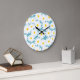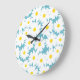 Reloj Redondo Grande Espacio negativo Daisies amarillo blanco sobre azu