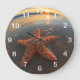 Reloj Redondo Grande Estrellas de mar y burbujas en la puesta del sol