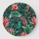 Sumérjase en la exuberante belleza de la selva tropical con esta vibrante pintura acuática. Con exóticas hojas tropicales verdes y rosas sobre un telón de fondo oscuro, capta la esencia de la elegancia indomable de la naturaleza. Perfecto para añadir un toque atrevido y botánico a cualquier espacio.