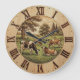 This rustic farmhouse wall clock features a peaceful pastoral scene of grazing cows in a green meadow, surrounded by trees and rolling hills. Designed with a vintage wooden look and classic Roman numerals, it adds timeless charm to any space.