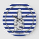 Reloj Redondo Grande Faro de estilo cromado en franjas náuticas azules