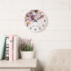 Reloj Redondo Grande Fiesta acuarela Boho Flores rosadas Elegante