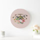 Reloj Redondo Grande Fiesta de Tetera Rosa Floral y Mariposas Cocina