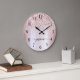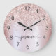 Reloj grande personalizado con monograma de nombre en escritura con destellos metálicos dorado rosa Glam femenino. Estos diseños presentan su primer nombre en una bonita tipografía de letra manuscrita con cola de cisne y tipografía con lámina metálica dorada rosa rosa con borde de brillo glamuroso. Estos son fáciles de personalizar. Gran regalo elegante y femenino para inauguración de casa, también para cumpleaños, día de la madre, boda, despedida de soltera, fiesta de cumpleaños número 16 y baby shower, graduación y es para la chica que ama cosas únicas y elegantes con brillo.