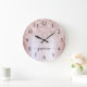 Reloj grande personalizado con monograma de letra script y brillo metálico rosa dorado. Estos diseños presentan su primer nombre en una hermosa tipografía de letra manuscrita con cola de cisne y tipografía de firma en hoja metálica falsa rosa dorada con borde de brillo glamuroso. Estos son fáciles de personalizar. Gran regalo elegante y femenino para inauguración de casa, también para cumpleaños, día de la madre, boda, despedida de soltera, fiesta de cumpleaños número 16 y baby shower, graduación y es para la chica que ama cosas únicas y elegantes con brillo.