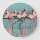 Aves salvajes africanas. Un grupo de flamencos rosados africanos deambulando por la laguna azul en un día soleado. Gran diseño para los amantes de las aves silvestres. Da una forma distintiva al diseño.