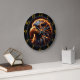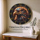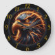 Majestic eagle with fiery flames engulfing its head, symbolizing power, strength, and bravery as it soars through the skies.. With gold clock numbers