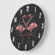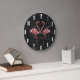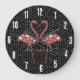 Una linda huella de flamencos rosados, porque los flamencos son hermosos y ¡qué niña no ama los flamencos! Estos dos flamencos de besos crean un poco de corazón en el centro. Están decoradas con mosaicos que le confieren un aspecto moderno y abstracto. Resumen contemporáneo Reloj moderno negro rosa Flamingo grande reloj grande