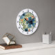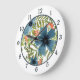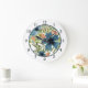 Reloj Redondo Grande Flor azul acuarela con bayas rosas