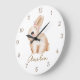 Reloj Redondo Grande Floral Bunny Personalized Nursery Wall Clock Custo