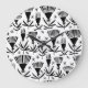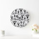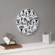 Reloj Redondo Grande Flores abstractas blancas negras: patrón elegante