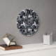Reloj Redondo Grande Flores abstractas rosadas grises modernas