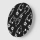 Reloj Redondo Grande Flores blancas negras retro Cinta de pared