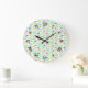 Reloj Redondo Grande Flores coloridas sobre verde pálido