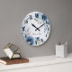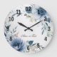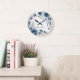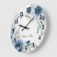 Reloj Redondo Grande Flores de Acuarela Azul Polvo Plateado Elegante