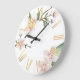 Reloj Redondo Grande Flores de manzana acuarela y números romanos dorad