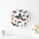 Reloj Redondo Grande Flores de mariposas: Colección de manos dibujadas