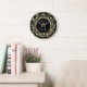 Reloj elegante de aniversario de bodas con flores doradas.