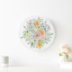 Reloj Redondo Grande Flores Rosas acuáticas y hojas verdes