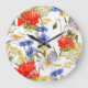 Reloj Redondo Grande Flores silvestres: acuarela azul oscuro sin costur