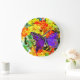 Reloj Redondo Grande Flower Garden Purple Butfly Wall Clock