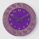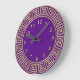Reloj Redondo Grande Fondo de Borde de Llave Griega Púrpura Dorado Art