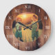 Rústico reloj de pared de madera oscura de granero con números romanos. Puedes personalizar y agregar tu propia foto y crear un reloj muy personal y único.