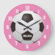 Reloj Redondo Grande Fútbol Personalizado Nombre Rosa